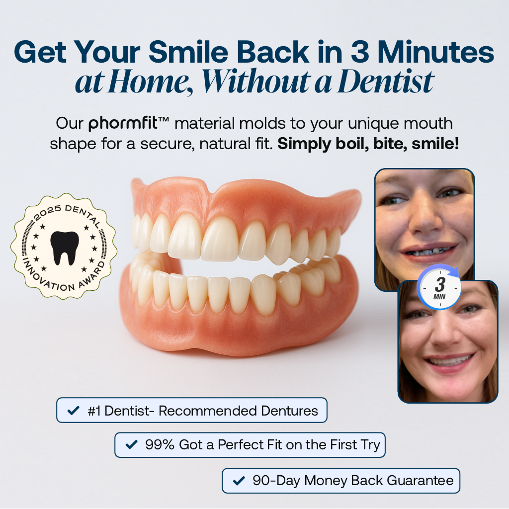 Try Your phorm™ Lab-Quality Self-Fitting Full Dentures NOW Risk-Free at an All Time Low Price!